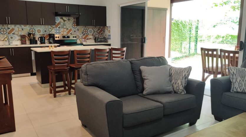Esta hermosa casa de una sola planta está ubicada en una comunidad cerrada en Jaco. Cuenta con tres dormitorios y dos baños, ofreciendo un ambiente cómodo y espacioso.