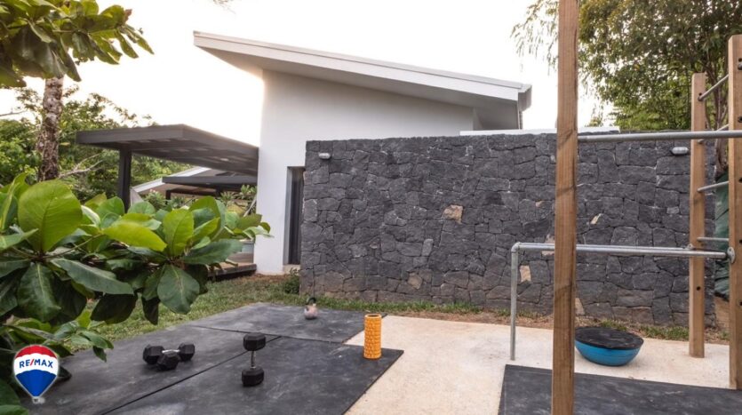 Beach Sanctuary in Playa Hermosa, just a few blocks away from the beach. Located in Valle Perdido gated community known for its privacy, security and natural surroundings. This unique place has a style of its own. Features an absolutely stunning living room with a soaring ceiling and walls of windows! The large, open kitchen built for function and flexibility with wooden cabinetry, countertops and stainless steel appliances blends with the living room for easy entertainment. You will love the wrap around deck “indonesian style” surrounded by fruit trees and lush vegetation.