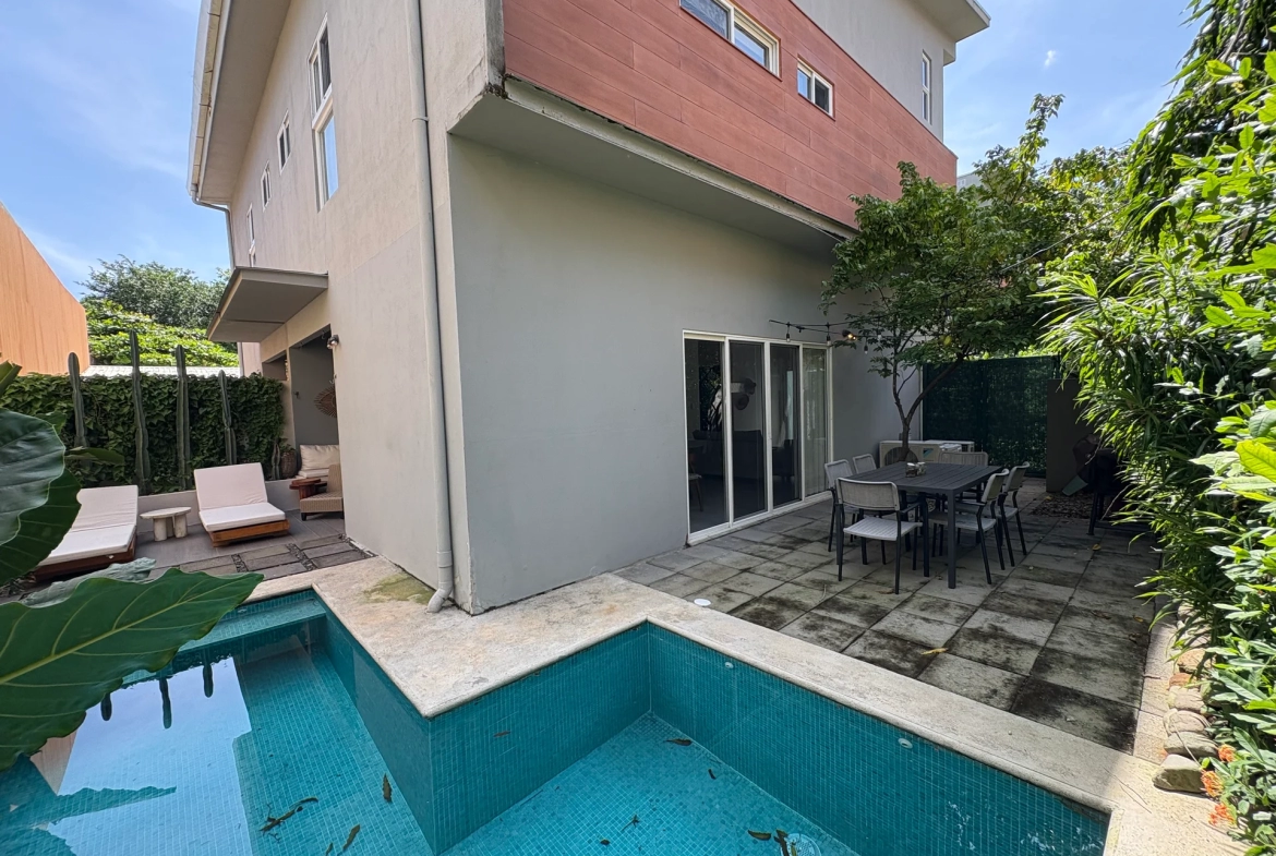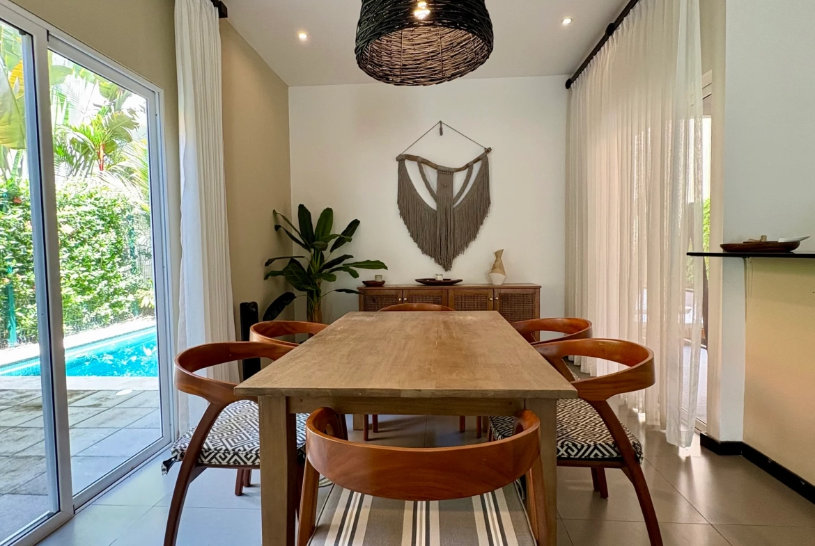 This home is fully furnished and includes all appliances, other exclusive features include a private swimming pool, private electric gate access parking (1 spot per home) as well as one of the most exciting features; a private community access directly to the desirable south Jaco beach, the best part of the beach to swim and learn how to surf.