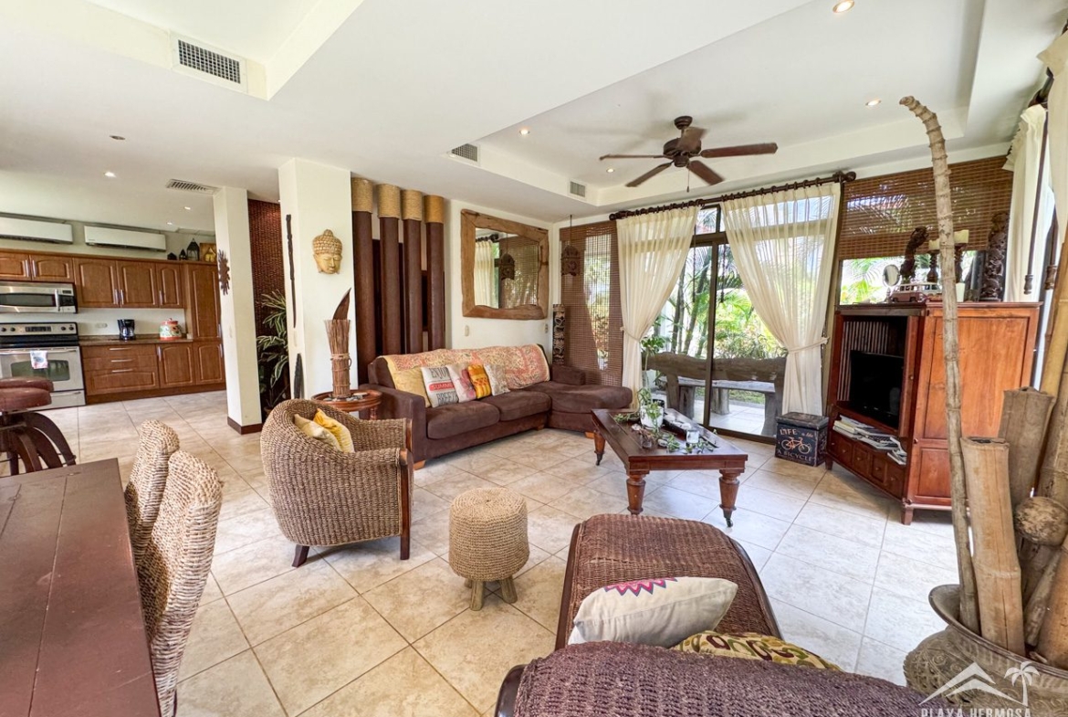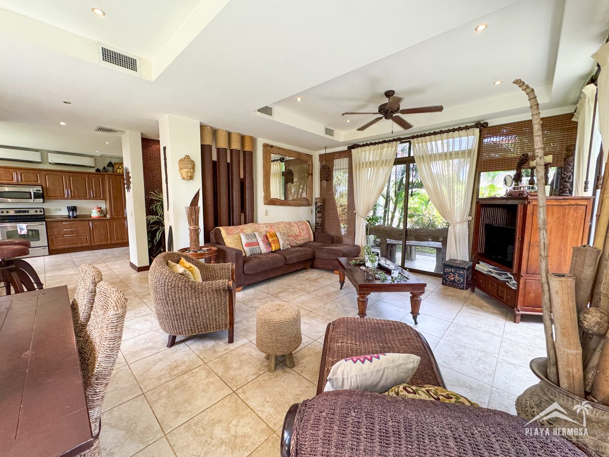 Esta hermosa propiedad de tres niveles se encuentra dentro de una de las comunidades privadas más exclusivas de Playa Hermosa, a pocos pasos del mar.