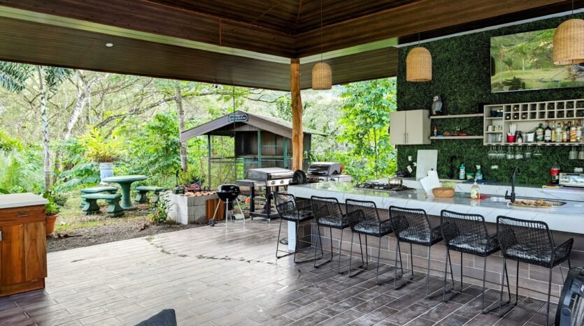 Organice reuniones inolvidables en la zona de barbacoa cubierta, que cuenta con amplios asientos y una cocina totalmente equipada.