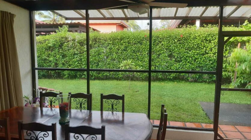 Esta casa en Jardines del Pacífico es uno de los modelos más grandes con algunas características deseables que incluyen un garaje, una gran terraza en el segundo piso, un patio trasero y un cuarto de lavado interior. Hay 3 dormitorios y 3 baños y viene equipado con un refrigerador y estufa/horno. Hay techos altos con ventiladores y aire acondicionado en toda la casa y un tanque de agua de respaldo. La casa está aproximadamente a medio kilómetro de la hermosa playa de Bejuco y a poca distancia en auto del centro de la ciudad de Esterillos, que cuenta con muchos restaurantes, tiendas y un supermercado con cajero automático. Jardines del Pacífico es una encantadora comunidad boutique con caminos de adoquines, un área común verde de dos acres con una gran piscina y un rancho para picnic. La comunidad también cuenta con una planta de tratamiento de agua (sin sistemas sépticos) y guardia de tiempo completo.