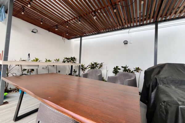 La casa cuenta con 2 habitaciones, 2 baños completos, cocina equipada, sala-comedor integrada y una terraza privada perfecta para disfrutar del clima tropical. El detalle más especial es su piscina privada de agua salada con acabado en piedra natural, moderna, elegante y diseñada para relajarse o compartir en un entorno exclusivo.