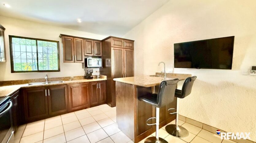 Ubicada en un entorno verde y frondoso, esta casa cuenta con techos altos y un diseño abierto que crea una atmósfera espaciosa y ventilada. Tiene una cochera techada para estacionamiento seguro fuera de la calle.