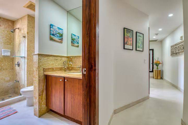 ✅Two full bathrooms with marble floors and walls.