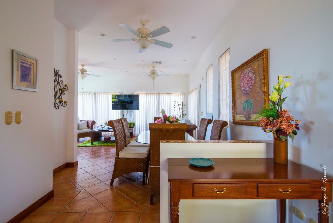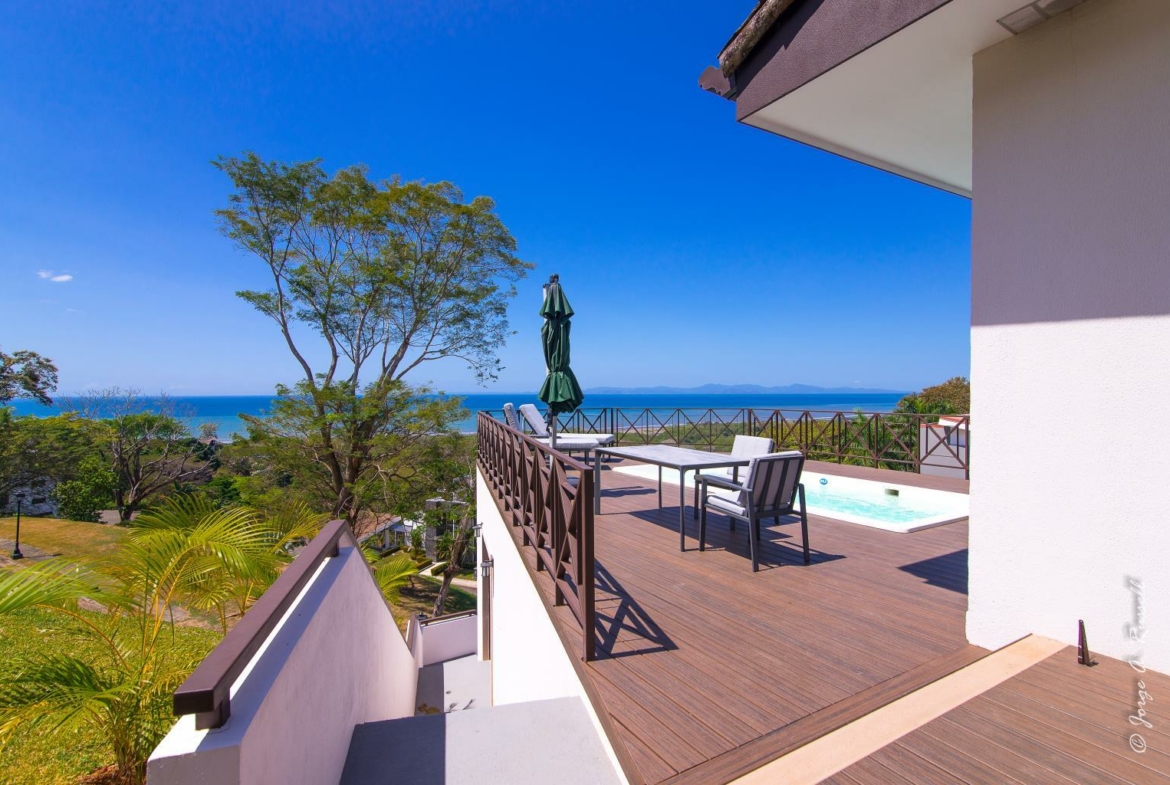 En el segundo piso se encuentra la recámara principal, con amplio closet y baño con tina; en la planta alta se encuentra el área social y la piscina, desde aquí se puede disfrutar de unas vistas encantadoras sobre el Golfo de Nicoya y la península del mismo nombre, Los atardeceres son increíbles desde aquí, siempre, con una amplia sala, comedor, amplia terraza, y una amplia cocina, así como balcones en el segundo y tercer nivel,