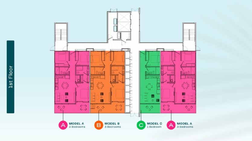 This Model C residence features a well-designed layout with one bedroom, spacious living areas, and the added convenience of a dedicated storage unit —perfect for surfboards, bicycles, or beach gear.