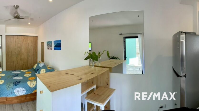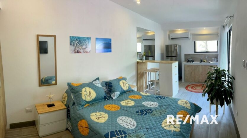 The 3 studios have one open bedroom and a private bathroom.