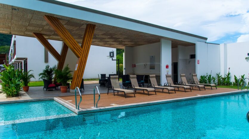 El condominio dispone de una atractiva área común, que incluye una piscina semiolímpica tratada con sales minerales 💧, ideal para el bienestar y la relajación. Además, cuenta con una casa club con una hermosa vista a las montañas de Jacó ⛰️, perfecta para disfrutar en familia o con amigos.