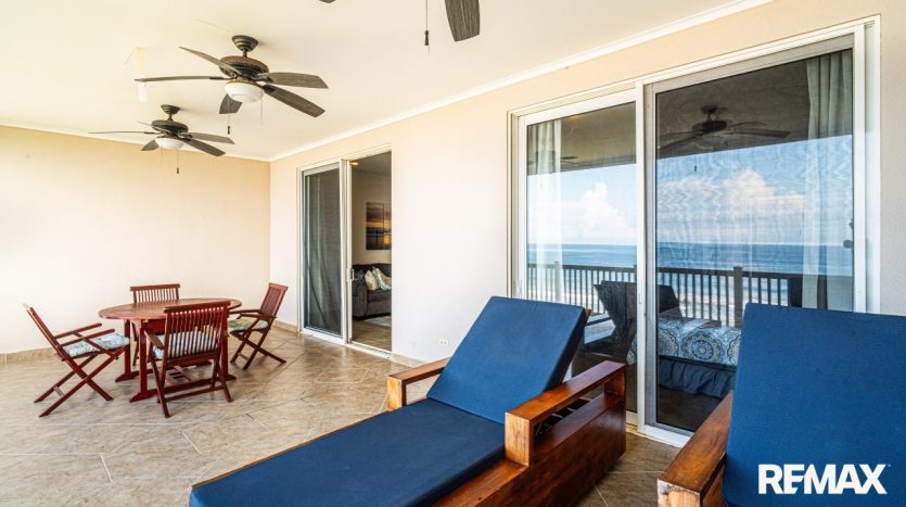 The oversized oceanfront balcony is the focal point of the home, designed for entertaining, relaxing, and enjoying the sunset over the Pacific. Floor to ceiling views extend into the living room and master bedroom, creating a continuous connection to the beach and ocean.