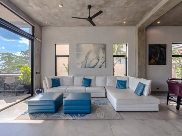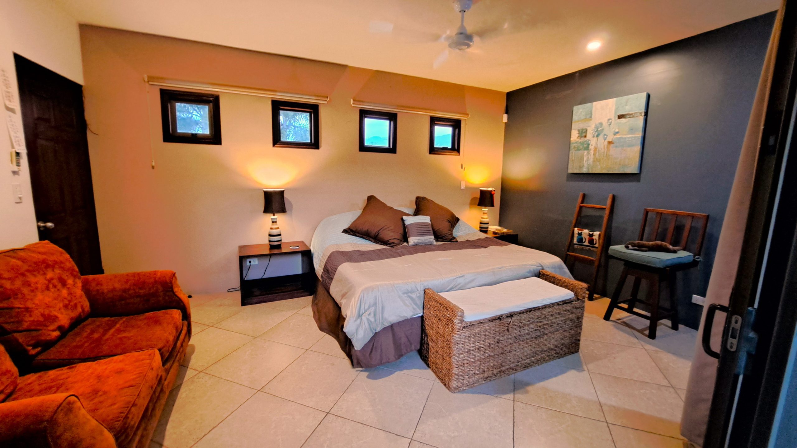 - Espaciosa suite principal: El dormitorio principal del segundo piso es un verdadero oasis. Cuenta con un diseño de gran tamaño, un vestidor, un baño privado y puertas corredizas de vidrio que se abren a un balcón privado donde puede tomar su café de la mañana mientras disfruta de las palmeras y la relajante brisa del océano.