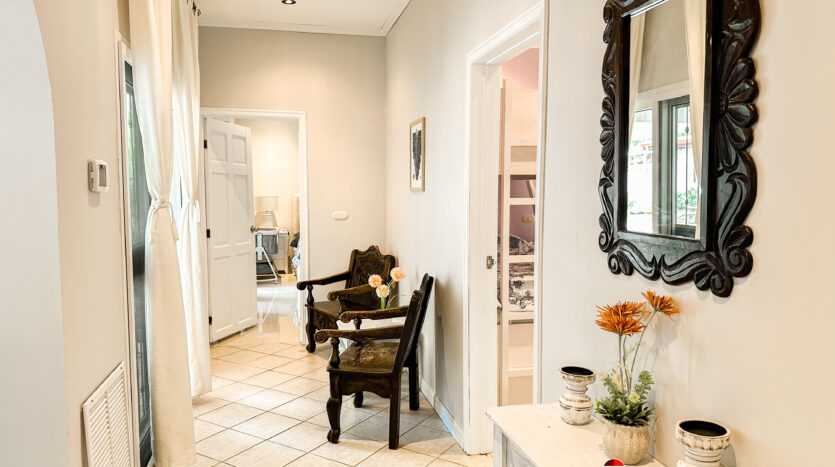 La casa principal incluye cuatro amplias habitaciones con baño privado, mientras que las dos casas de huéspedes completamente equipadas brindan independencia para familiares, invitados o como opción de alquiler.